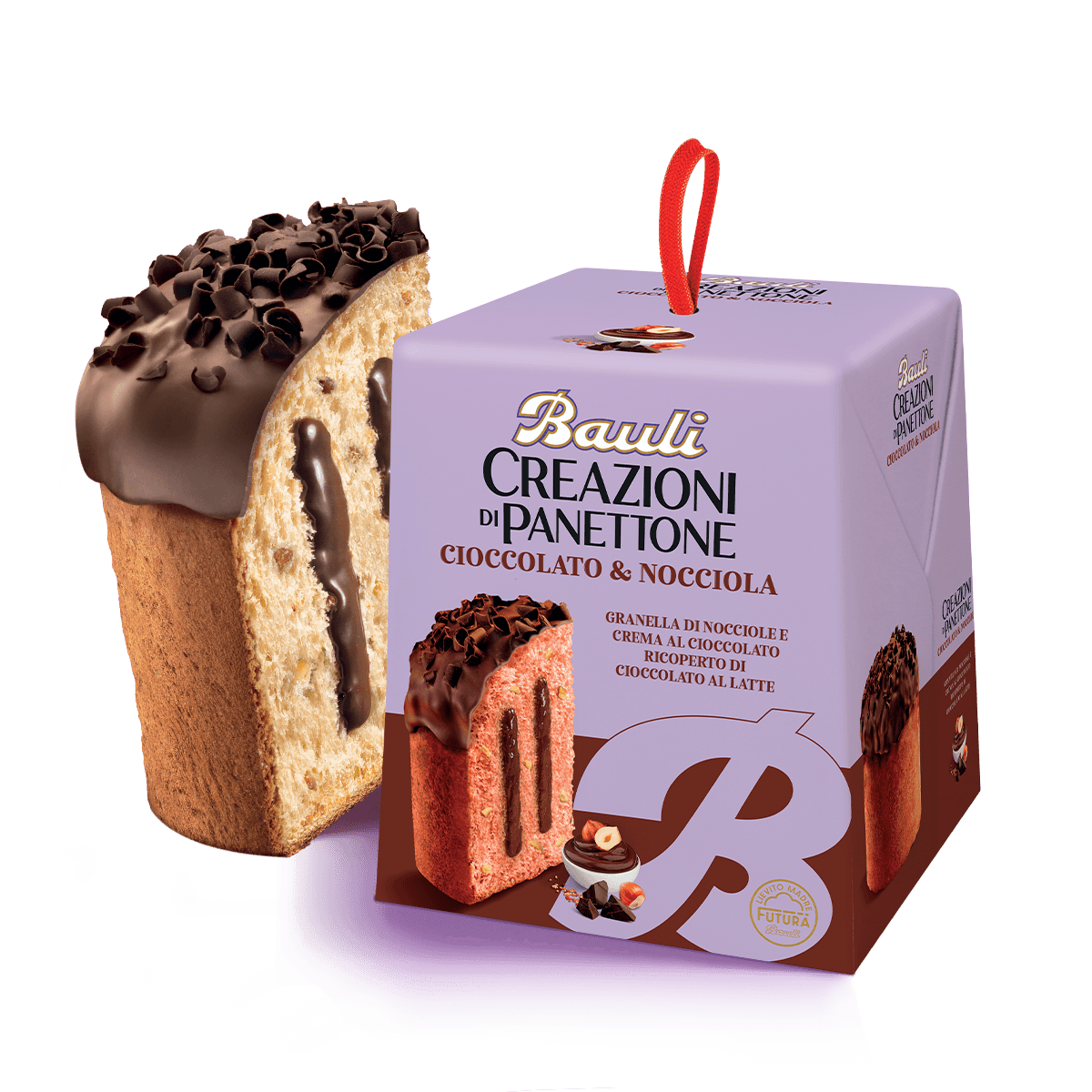 Con copertura al cioccolato al latte, granella di nocciole croccanti, una farcitura di golosa crema al cioccolato…e tutta la sofficità di un Panettone Bauli lievitato naturalmente con lievito Madre Futura. La magia delle feste è irresistibile!
